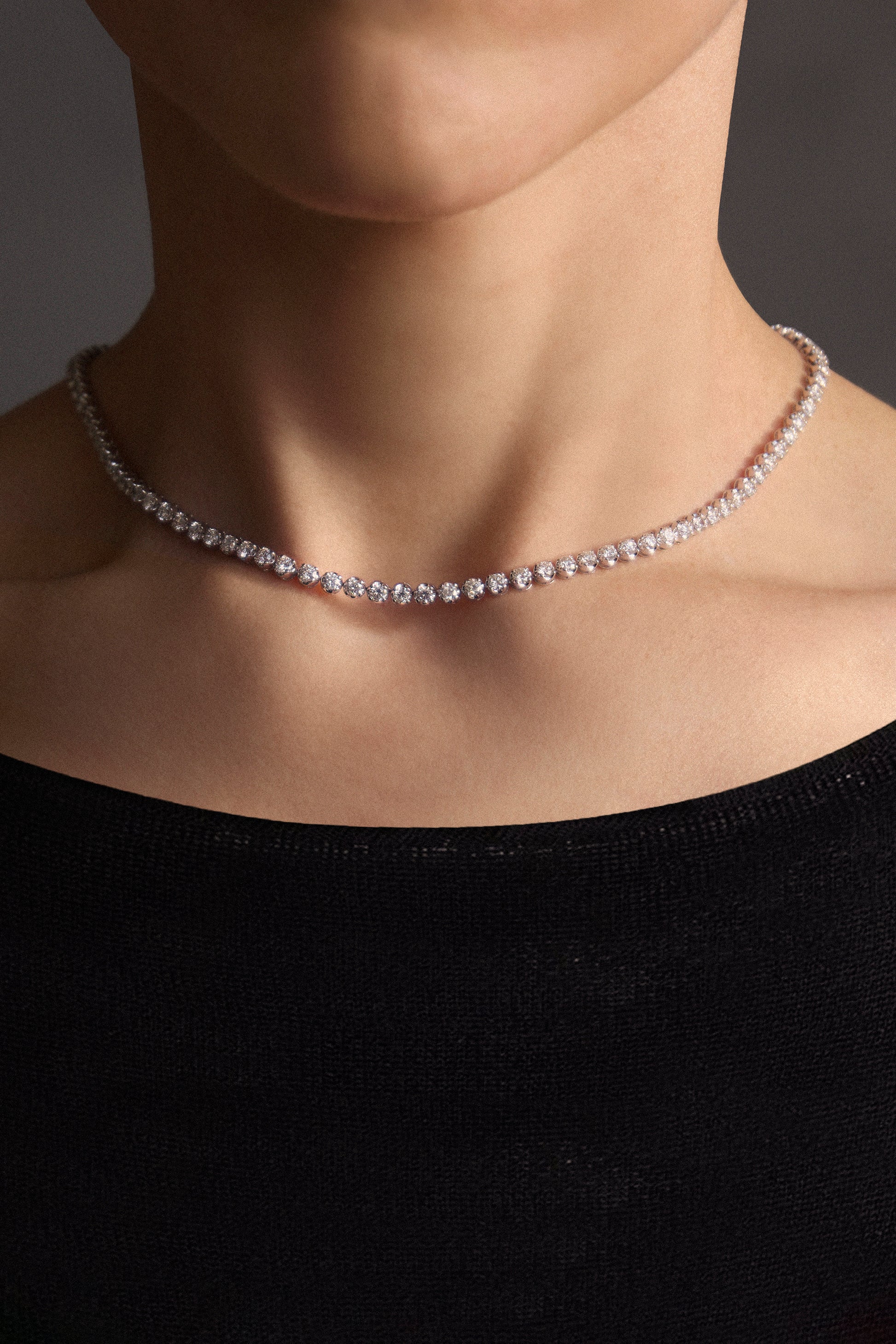 Crown Set 3/4 Tennis Necklace
