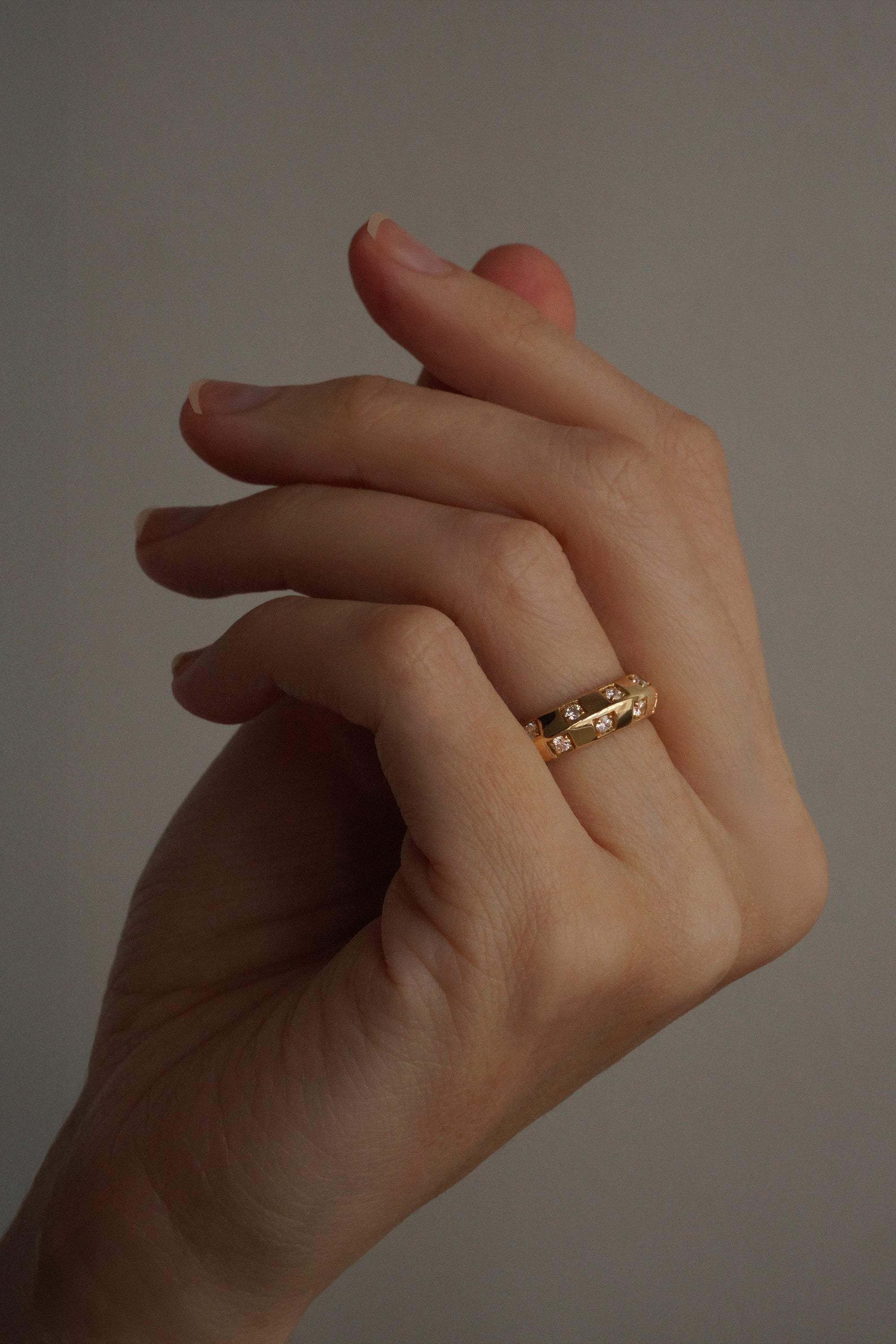 - 14K gold hollow band with a high polish finish