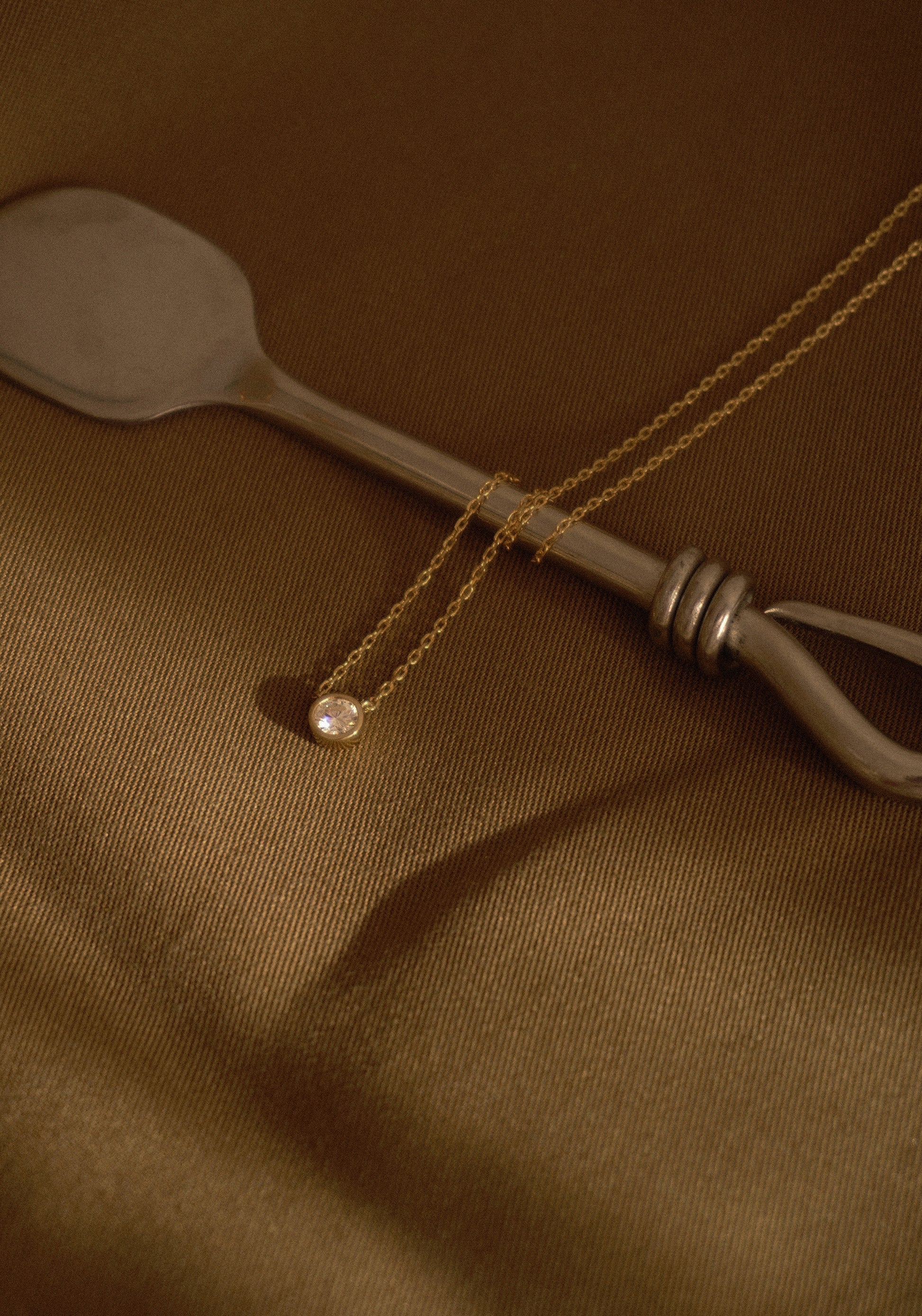 14K gold bezel setting and diamond-cut chain